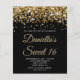予算金ゴールドグリッターブラックスウィート16招待状