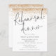 4.5インチx 5.6インチの低価格の代替品。デフォルトのオプションであるセミグロス110 lbカードストック(招待状の場合は厚い)またはサテン仕上げ80 lbシンナー紙ストック(エンクロージャの場合は理想的)で利用可能。封筒はオプションの追加で、カードサイズよりも少し大きいモダン。このデザインにはリハーサルエレガントディナー用の非公式なセットスクリプトと各サイドの上部に金ゴールドグリッターの縁どフェイク1つ含まれている。簡単にパーソナライズできるタイポグラフィの残りの部分。また、文字と背景色は、「続もし行」オプションでカスタマイズも変更できる。