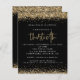 金ゴールドエレガントグリッター30番目のパーティーブラック招待状。予算フレンドリーは4.5インチx 5.6インチの代替品。セミグロス110 lbカード素材またはサテン仕上げ80 lbシンナー紙素材。封筒はオプションで追加できる。金ゴールドフェイクグリッター縁ど紙吹雪は上下に位置し、背面にも位置する。30番目の文字は手書きモダンスタイルで設定する。簡単に自分の文字の残りの部分をパーソナライズ。