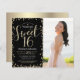 「Happy Sweet 16」。忘れないよ素晴らしうにカスタムイベントのためにガーリー、スパークリー、フェスティバル、モダン、パーソナライズされたパーティの招待状の予算の写真を送信する。金ゴールドグリッタースクリプトタイポグラフィと紙吹雪は、カードの半分離れに黒い背景をオーバーレイ。右にカスタムは誕生日の女の子の写真がある。ブラッシング金ゴールドフォイルは背面にある。娘の名カスタム前と他のパーティー詳細で文字をパーソナライズする。グリッター素晴らしとグラムを愛しファッショニスタてモダン、彼女の特別なパーティーにおもしろいを追加することを保証した出芽のためのスタイリッシュ!マッチングプレート、ナプキン、その他の誕生日グッズもこのトレンディーと特別なコレクションで利用可能である。ちょうど誕生日の女の子の名前とパーティーの場所の情報を入力し、テンプレートの写真を自分の写真の1つに置き換え、簡単にこの誕生日の招待をパーソナライズすることができる。質問や要望があれば私に連絡して下さい。
