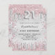 21モダン歳のスタイリッシュ誕生日パーティーへの魅力的な招待。ピンクフェイクと銀の飾グリッターの塵と銀フェイク色の背景。名前とパーティー・詳細のパーソナライズおよび追加21番はバ書ロンスタイルフォント、スクリプト付き。