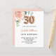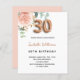 30歳エレガントの誕生日パーティーへの招待。シックな白い背景。バラ飾金ゴールドと赤面ピンクの水色のバラの花、フローラ、緑のユーカリ葉プスの、スリグ、緑と金ゴールドのスリフェイクグを持つ。パーソナライズ、名前とパーティー詳細。黒と金色の文字名前は手書文字のスタイルスモダンクリプト付き。30番は金書球スタイルフォント。戻る:バラ金ゴールドの背景色