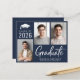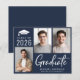 ダークモダンネイビーの予算フレンドリー卒業発表3枚の写真と白い台本で「卒業はっきりした」コンテンポラリーを発表。大学院の名前、学年、学校または大学をタイポグラフィ白シンプルに追加。