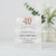 40歳モダンのスタイリッシュ誕生日パーティーへの魅力的な招待。銀フェイク色の背景、飾グリッターの塵。名前とパーティー・詳細のパーソナライズおよび追加40番は書バラ金ゴールドバルーンスタイルフォント、スクリプト。