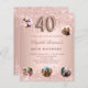 40歳モダンのスタイリッシュ誕生日パーティーへの魅力的な招待。バラ金ゴールドグラディエントの背景エレガント、バラ金ゴールド、フェイク赤面グリッタードリップ絵を描ルック。名前は暗い書バラ金ゴールド色の手でスタイルスクリプトと一緒に。カスタマイズしてパーティー詳細と写真を追加する。40番はバ書ロンスタイルフォント、スクリプト付き。