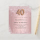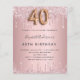 40歳モダンのスタイリッシュ誕生日パーティーへの魅力的な招待。ほこりっぽいバラ、ピンクフェイクの金属的な背景とグリッタードリップフェイク、絵を描滴り落ちる外観。名前は暗い書グレーの手で書かれたスタイルのスクリプトでモダンある。カスタマイズしてパーティー詳細を追加する。40番はバ書ロンスタイルフォント、スクリプト付き。