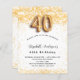 40歳エレガントの誕生日パーティー。シックな白い背景。フェイク飾金ゴールドグリッター、きらめき。名前、年齢、およびパーティー詳細をカスタマイズして追加する。名前は手書入力のスタイルスクリプトで指定する。バルーン付き40番スタイルフォント。