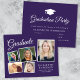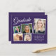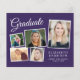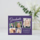 5モダン枚の写真のコラージュと白い台本のエレガント「卒業」と卒業生の名前、学校とクラスの年を含むタイポグラフィのホワイトの卒業式の招待ハガキを描いた予算パープルの卒業式のパーティの招待シンプルハガキ。背面にパーティー詳細を追加。この予算セミグロス紙は写真紙に似ている。より大きな5x7伝統的カードのストック版も利用可能(リンクにメッセージus)。