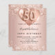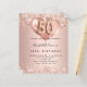 50歳エレガントの誕生日。バラ金ゴールドフェイクの金属的な背景。バラ飾金ゴールド、ピンクフェイクの輝き、キラキラと風船。名前とパーティー・詳細のパーソナライズおよび追加名前は手書スタイルスクリプトで、番号50、バルーンスタイルフォント。