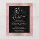 予算とシックフレンドリーなブラックと輝くバラ金ゴールド50歳の誕生日パーティーの招待エレガントバラタイポグラフィスクリプトとバラ金ゴールドで50と素晴らスタイリッシュしい"50とシンプル"の。