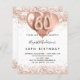 60歳エレガントの誕生日。白いスタイリッシュ背景。バラ飾金ゴールド、ピンクフェイクグリッター、スパークルとバルーン付き。名前とパーティー・詳細のパーソナライズおよび追加名前は手書スタイルスクリプトで、番号60、バルーンスタイルフォント。