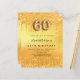 60歳モダンのスタイリッシュ誕生日パーティーへの華やかな招待。金ゴールドフェイク金属の外観の背景とフェイクグリッタードリッ絵を描プ、滴下。名前は手書文字のスタイルスモダンクリプト付き。カスタマイズしてパーティー詳細を追加する。60番はバ書ロンスタイルフォント、スクリプト付き。