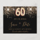 Aとガーリートレンディー60歳の誕生日パーティーの日付を保存する。黒い背景飾と金ゴールドフェイクグリッター。日付、名前、および文字のテンプレート。金色の文字。文字:日付の保存は大きな書トレンディーの手入力スタイルスクリプトで行う。