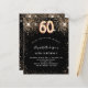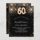 60歳モダンのスタイリッシュ誕生日パーティーへの華やかな招待。黒い背景飾とグリッター。金色の手書で書かれたモダンスタイルの台本がある。カスタマイズしてパーティー詳細を追加する。60番はバ書ロンスタイルフォント、スクリプト付き。