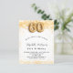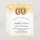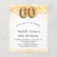 60歳エレガントの誕生日パーティー。シックな白い背景。フェイク飾金ゴールドグリッター、きらめき。名前、年齢、およびパーティー詳細をカスタマイズして追加する。名前は手書入力のスタイルスクリプトで指定する。バルーン付き60番スタイルフォント。
