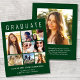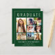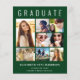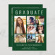 大きな白エレガントタイポグラフィのトップに祝GRADUATEを掲げ、7つの写真コラージュと彼の名前、クラスの年と白タイポグラフィの学校を特徴とする卒業に対する予算と緑の卒業発表モダン。背面に写真とメッセージを追加カスタム。