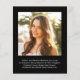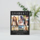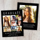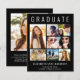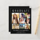 大きな白エレガントタイポグラフィの上にフレンドリー「GRADUATE」を設置し祝、写真集を7つ、名前、学年、学校をホワイトタイポグラフィで発表した卒業発表モダン。背面に写真とメッセージを追加カスタム。