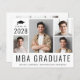 MBA修士号フレンドリーの卒業発表は、4つの写真写真コラージュ「MBA卒業生書」と大きな大文字と学年、学名と学名と大学のタイポグラフィを含むシンプル。反対側に、写真とメッセージを追加パーソナライズされたする。