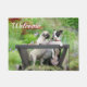 2匹のかわいい犬と、黒い仮面をつけた子犬の子犬と、若いボストンテリアの子犬と、白い模様の黒い犬が、並んでポーズをとり、庭の古い木製の荷車で一緒に話している。カト・メンデンが撮ったかわいい犬の写真。この写真印刷ドアマット歓迎は愛犬家のためのギフトアイディアである。名前または文字でカスタマイズ。
