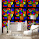 モンドリアンスタイルデザイン、幾何学的およびカラフル、色の付いた交差する正方形および長方形