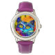 人工知能の動物の猫の顔が写真に落ちるのを見て息を吹き込む絵を描。この時計の美しいデジタルデザイン