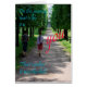 男の子と女の子の歩くが明るい晴れた日に道に並び、木々が道の向こうに影を落とす。人生を価値あるものにする気持ちを持って。