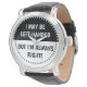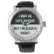 私は手離れに入るかもしれないが、私はいつも正しい!-おもしろいことわざユーモアのあるは左利きだった。手もしで遊スポーツを離れするデザインことわざは、あなたのために。完全にカスタマイズ可能な文字。上に白い時計線、下に黒い時計線。