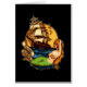 海賊船および人魚のヴィンテージの入れ墨の芸術のイメージ