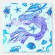 美風変わりしい、紫とターコイズ妖精海の生き物、この人魚は泳ぎ遊虫で、星魚、貝殻、海藻、魚に囲まれ、小さな海馬を手に持つ様に見える、すべての要素が組み立てられ、ファンタジーのパターンを構成する。ベクターイラストレーションCopyright BluedarkArt.