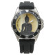 この仏ミニマル体のシルエットは、ニューヨークのThe Metコレクションに出品されたタイの青銅製の坐像(15世紀後半~16世紀初頭)をベースにしている。彼は右足を上に置いたサツヴァリアンカサナの十字のヨガの姿勢に座っている。字幕"the time is now"を編集または削除する – 私たちは追加した、このデザインを少し「軽い」、より舌の頬にする – だけでなく、時計を見るたびに「今」に留まることを思い出させるためにも。背景は – フェイク金ゴールド。