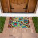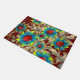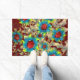 仮想違うの花、濃い赤の上に青い花びら ドアマット