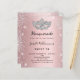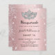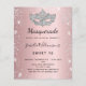 仮装エレガントの為に、甘い16、16歳の誕生日。赤面ガーリーピンクのメタリックな背景。銀飾のグリッターの塵と仮装の仮面を名前、年齢、およびパーティー詳細をカスタマイズして追加する。名前は手書文字のスタイルスクリプト