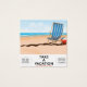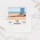 ヴィンテージデッキチェアのバケーション「鉄道で速く」ヴィンテージスタイルビーチの休日ポスターと海の熱い砂浜のビーチにビーチボールを取ストライプのる。