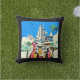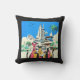 装飾用クッションはイラストレーション3匹で、スタイリッシュ未来的な街並みの前に立つ観光客の格好をした猫。この建築は世紀半ばのSF美学を想起させる。猫たちはカメラや地図や衣服のラニードを持ち、冒険を示唆している。ヤシの木と明るい青い空が休暇の雰囲気を高める。