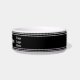 この白黒ペットボウルには、編集して会社名を表示したり、文字メッセージを追加したりするための白い表示カスタムメッセージがある。文字の両側に表示画像がある。イメージを適切なロゴに置き換えることができる。
