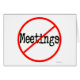No Meetings皮肉なオフィスのユーモアのスローガンは、赤い円と線と歪んだ文字で。職場の会議に巻き込まれないで、この感じことわざの本当の姿を見せおもしろいなさい。
