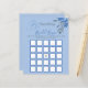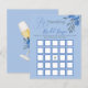 書道エレガント台何か青いブライダルシャワーをテーマ結婚にしたビンゴおもしろいゲーム水色の花。向こう側には花束のシャンパンのグラスがある。