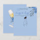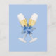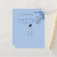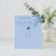 書道エレガント台詞Something Blueブライダルシャワーテーマは、水色の花とドレスゲおもしろいームを推測する。向こう側には花束のシャンパンのグラスがある。