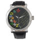 乱雑な色番号と文字「何時か」を備えたコンセプチュアル・ウォッチ – デザインを編集し、黒い背景色を変更できる