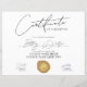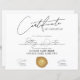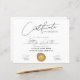 トレンディーエレガントスクリプトのフォントと金ゴールドワックスのスタンプ付き完了フェイク証明書。感謝やパーソナライズされた卒業証書を作成するのに最適。このプロフェッショナルコース賞モダンは、書のフォントミニマル、レイアウト、ロゴやイニシャルの宇宙付きワックスシールのバッジを備え、美しいデザインの証明書を作成する。