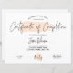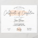 クリームフェミニン水色の背景を持つ完成証明書。プロフェッショナルコースの完成賞に最適。Flash証明書または美しいサロン証明書に使用する。この認定証デザインは、モダンスクリプトフォントとベージュガーリーウォーター色デザインと宇宙を備え、ビジネス詳細とロゴに使用できる。学生のための完了賞を作成するのに最適。