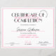 美しいコース修了証明書ホワイトとホットピンクで、ラッシュや眉などの美しいコースの修了証明書に最適。また、この証明書賞モダンデザインは、任意の種類のプロフェッショナル卒業証書に使用できる。このピンクの美学コース賞は、スクリプトモダンフォントが美しい実績デザインの証明書を作成することを特徴とする。