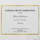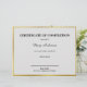 すべての文字は、この完了証明書で編集できる。署名者の名前の行は最下付近にある。フェイク金ゴールド縁どは箔で作られていない。