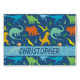 あなたが個人化でき、あなた自身の名前を加えるカラフルな恐竜のシルエットパターン。 青い背景の多彩なパターンのティラノサウルス・レックスのレックス、titanosaurs、Triceratop、猛禽、Ankylosaurs、ディーノ鳥、ステゴサウルス、アパトサウルス、Pteranodonおよび多く、および緑、青、黄色の恐竜およびオレンジ。