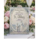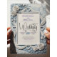 この繊細なブルーの偽のレリーフ花のデザインで、あなたのロマンチックな春の結婚式を高めてください。 見事なペーパークラフトのイリュージョンとエレガントなタイポグラフィーが特徴です。