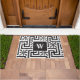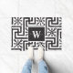 上品なエレガントスタイル黒モダンと白のモノグラムのdoormat.ギリシャの鍵のデザインの黒と白、余分に黒のフローラで美しい。真ん中に黒縁どと非常に上品。イニシャルWとアメリカの姓ウィルソン。ここでイメージと自分の名書前を変更できる。