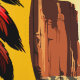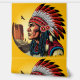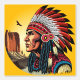 先住民アメリカのチーフポートレートは野生遠くにの砂漠の風景の中を遠く見て夕日の背景、オリジナルベクトルイラストレーション著作権BluedarkArt TheChameleonArt