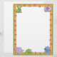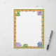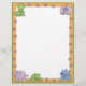 オレンジ色の恐竜足プリントと上角と下縁ど部にベビー恐竜が並ぶ可愛い漫画のレターヘッド縁どだ。