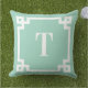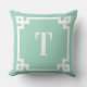 軽いティール(緑がかった色)と装飾の白いギリシャ語の鍵のスタイル縁どスクエアとセリフモノグラムモダン。このカスタマイズデザインはコンテンポラリー、色の組み合わせお気に入りのを選択する。必要に応じて、フォントのスタイル、サイズ、色を変更する。この色合いの青をホームデッキに合わせる。このデザインを?私の店のギリシャ語の鍵のカテゴリをチェックして他の装飾用クッションの形状とサイズ…だけでなく、他のホームデコールギフト。