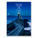 夕暮れ時の灯台が海に光を放つ。「光」と後を追いう言葉は白い文字である。